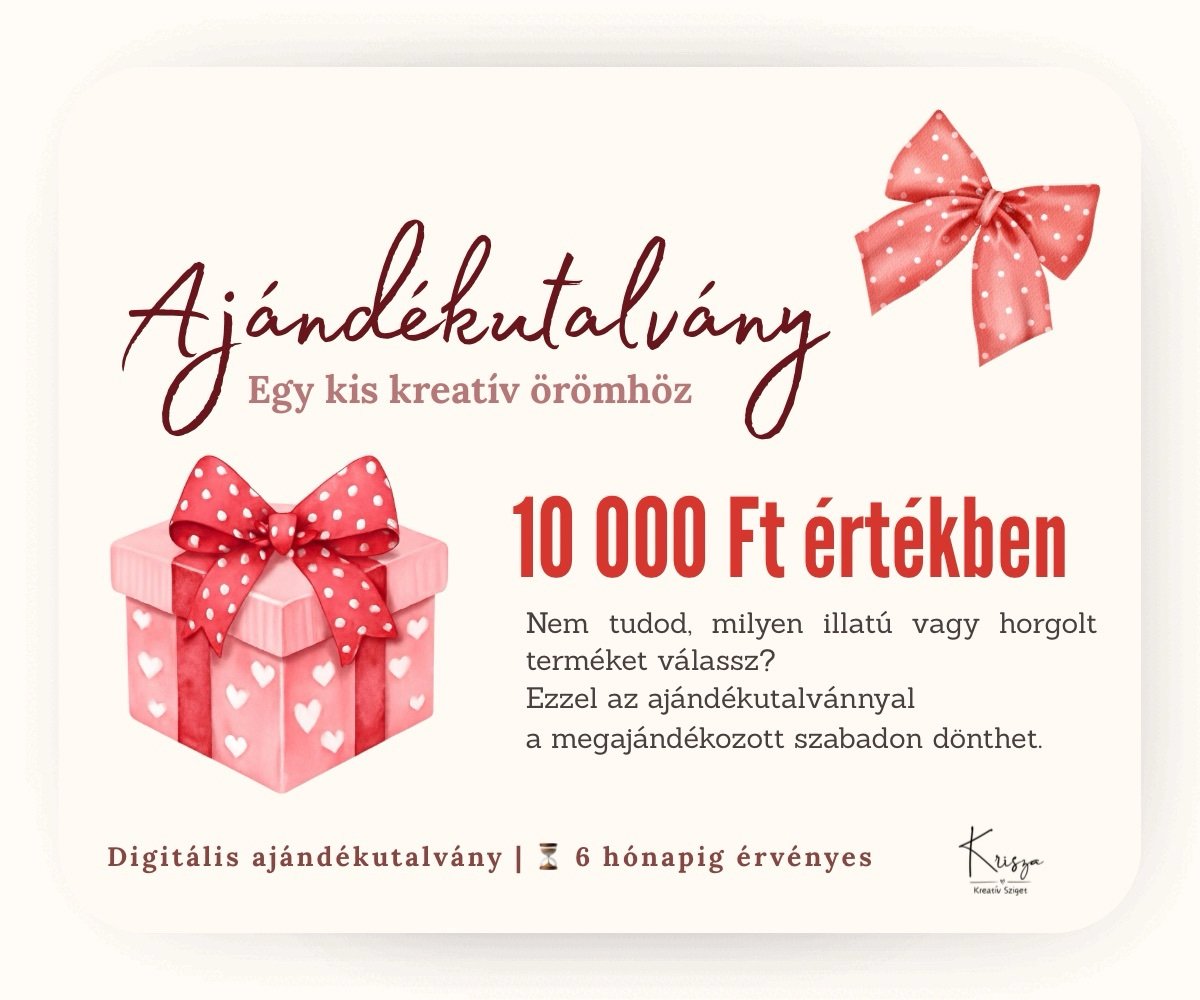 Ha szeretnél igazán örömet okozni, de nem vagy biztos benne, melyik illat vagy horgolt alkotás lenne a legjobb választás, a 10 000 Ft értékű ajándékutalvány biztos siker.